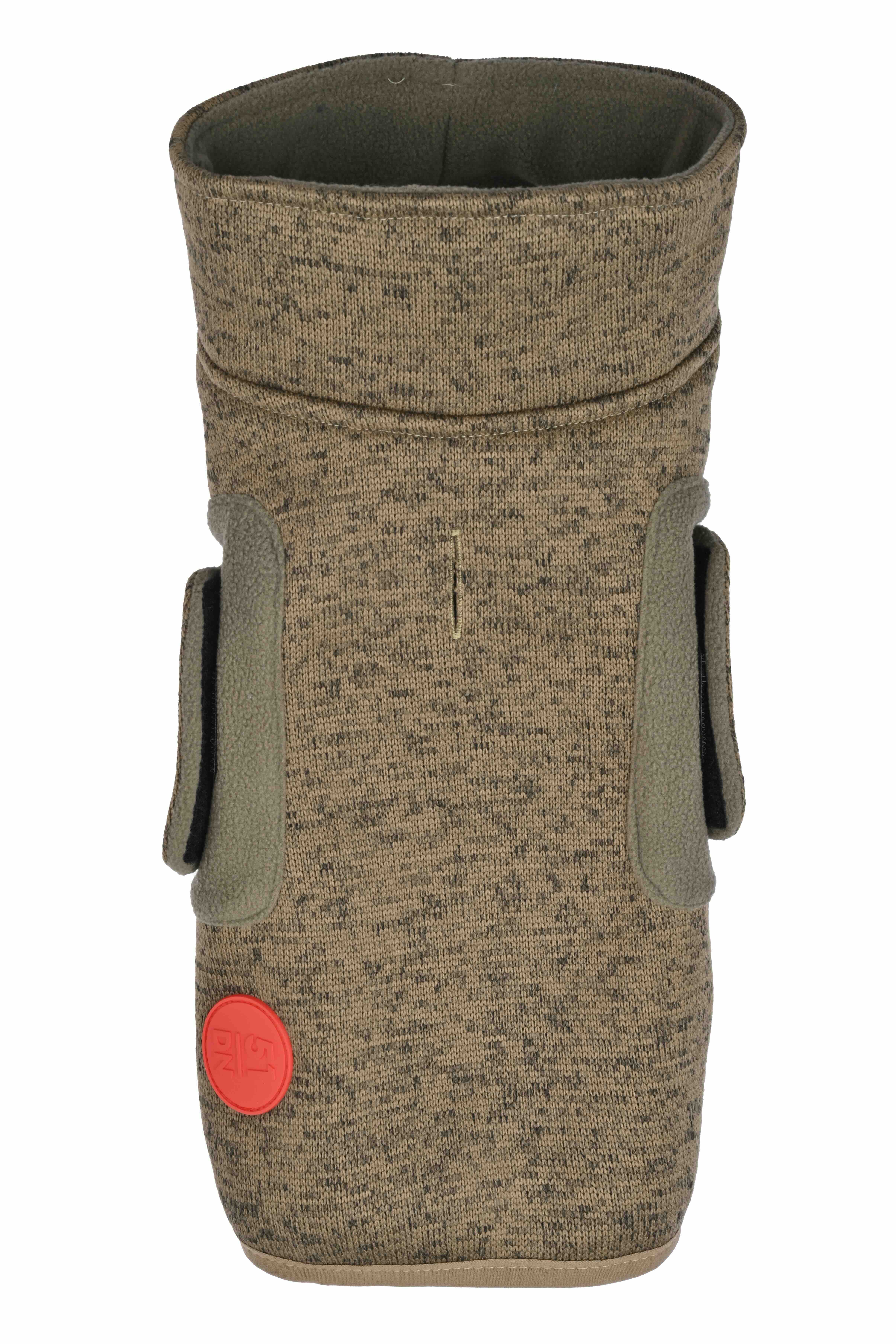 Made from water-resistant polyester with soft fleece linings for insulation. The materials ensure durability and warmth.